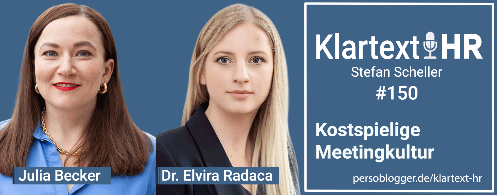 In der Podcast-Folge #150 von Klartext HR spricht Stefan Scheller mit Julia Becker und Dr. Elvira Radaca zum Thema „Kostspielige Meetingkultur“.