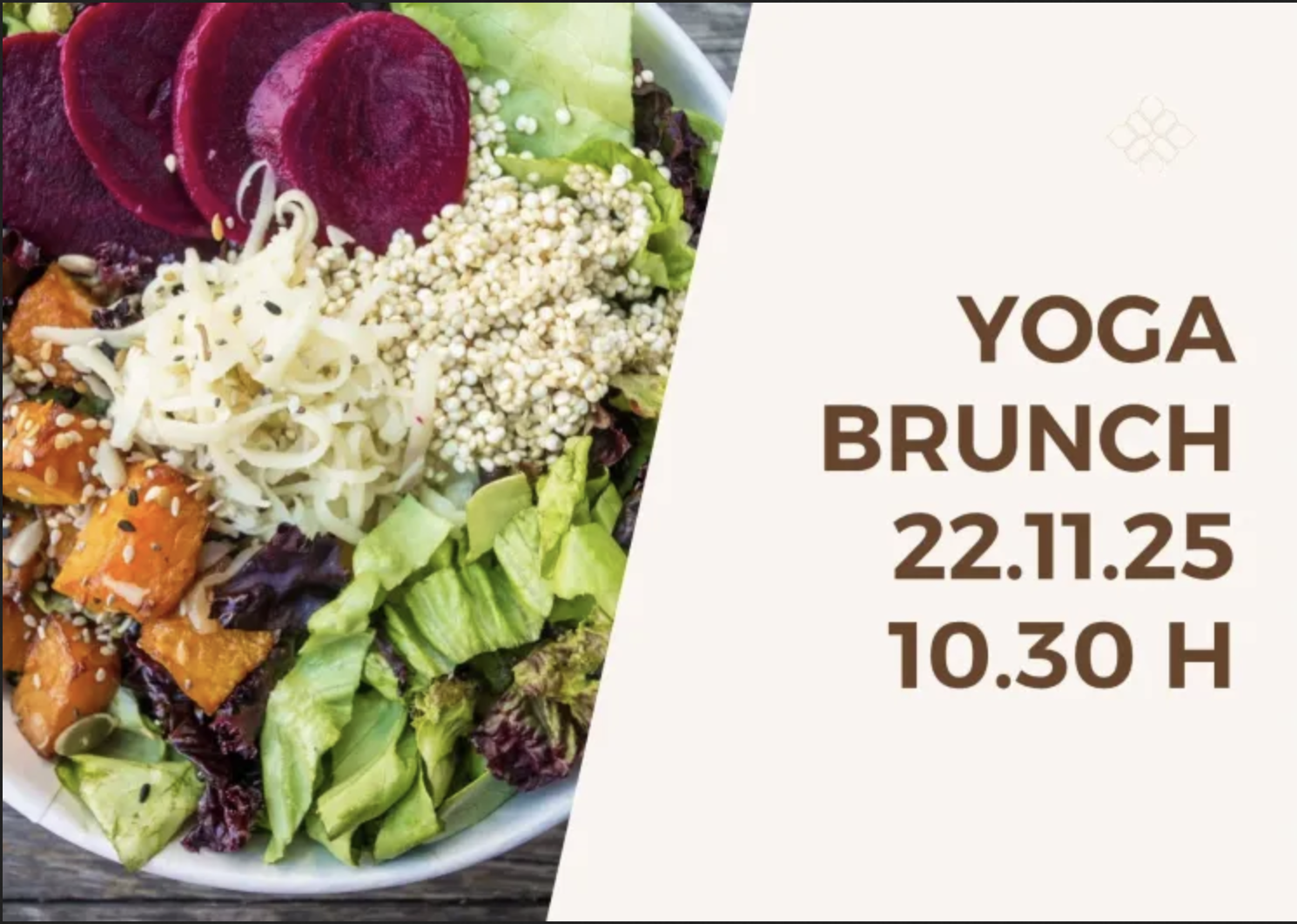 Um 9:00 h oder 10:45 h kannst du an einer Yogastunde teilnehmen; ab ca. 10:30 h treffen wir uns alle am Brunch-Tisch.