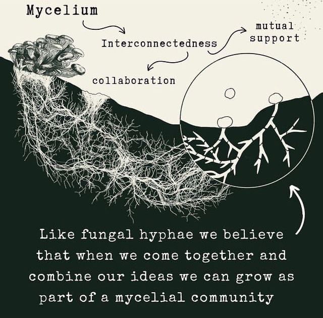Ich bin aktuell dabei, mich mit dem Pilz-Mycels zu beschäftigen. Das sind die Pilzgeflächte, die unterirdisch miteinander in Verbindung sind und daraus immer wieder mal Pilze ans Licht auftauchen.