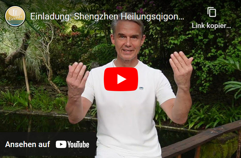 Schaue dir hier Carstens Einladungsvideo zum "Shengzhen Heilungs-QiGong" Workshop an, der Do-So, 18.-21. Mai, in Frankfurt stattfindet. Unter dem Video findest du weitere Informationen zum Workshop & Anmeldebutton. Melde dich jetzt an und profitiere vom Frühbucherpreis! | | "Shengzhen Heilungs-QiGong" Do-So 18.-21. Mai in Frankfurt