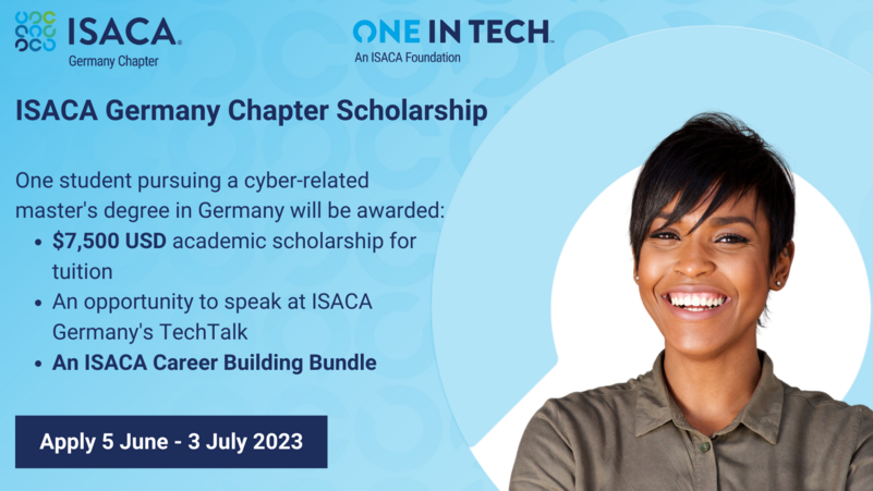 ISACA Germany Chapter and ISACA’s foundation, One In Tech, invite you to apply for an academic scholarship focused on cybersecurity-related studies! We will award a 7,500 USD academic scholarship for tuition to one master’s student who meet a certain criterion. The awardee will also receive a Career Building Bundle including free one-year ISACA student membership, ISACA course, mentoring, and more! Learn more about the scholarship and criteria: ISACA Germany Chapter Scholarship