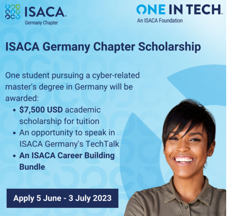 More info on the scholarship, as well as how to apply for the scholarship, can be found here: ISACA Germany Chapter Scholarship