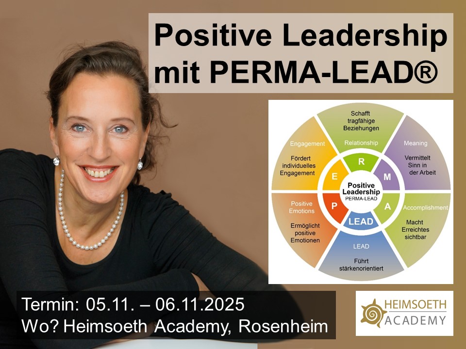 - 05.11.2025 Zum letzten Mal: Seminar Positive Leadership mit PERMA-LEAD® (2 Tage), Heimsoeth Academy, 83022 Rosenheim - 50% Rabatt sichern