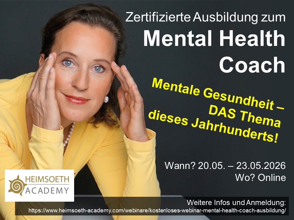 Die Ausbildung zum Mental Health Coach ist eine Coaching Ausbildung auf hohem Qualitäts-Niveau mit fundiertem Know-How, Wissens- und Kompetenz-Vermittlung durch eine sehr erfahrene Trainerin mit 22 Jahren Erfahrung. In der Ausbildung zum Mental Health Coach werden mit Konzepten der Salutogenese, denen des Life Coachings, Emotions-, Motivationspsychologie und mentalen Techniken gearbeitet. Die Ausbildungsinhalte basieren auf fundierten wissenschaftlichen Erkenntnissen.