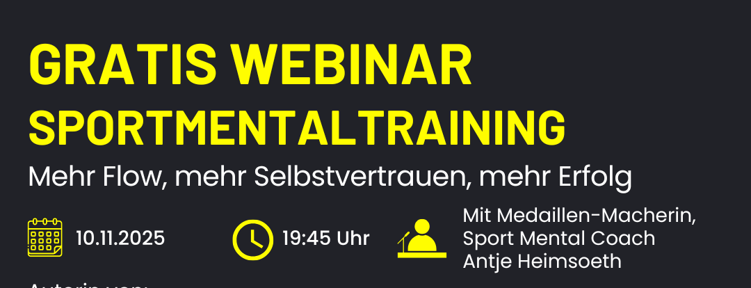 Diese Webinar "Sportmentaltraining" soll Sportlern, ob Profi oder Amateur, Trainern, Betreuern, Eltern und Nachwuchssportlern helfen, die mentale und emotionale Stärke zu verbessern, Resilienz aufzubauen und das Selbstvertrauen zu stärken.