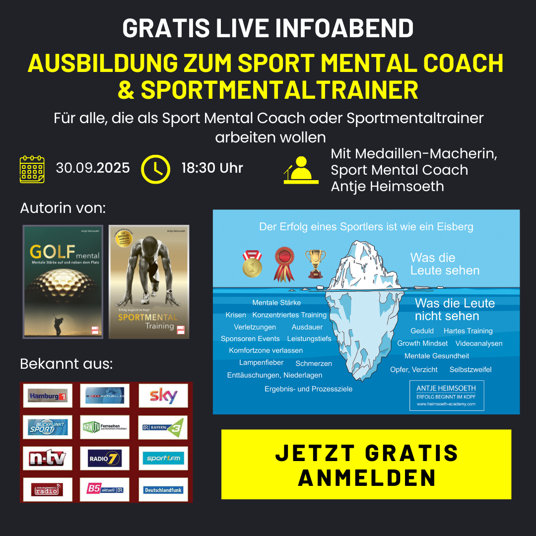 Wollen Sie andere begleiten auf dem Weg zur optimalen Leistung im Sport & Business, vertrauensvoller Gesprächspartner bei der Bewältigung von mentalen Leistungstiefs, Versagensängsten und in Krisen sein und neue Möglichkeiten kennenlernen?