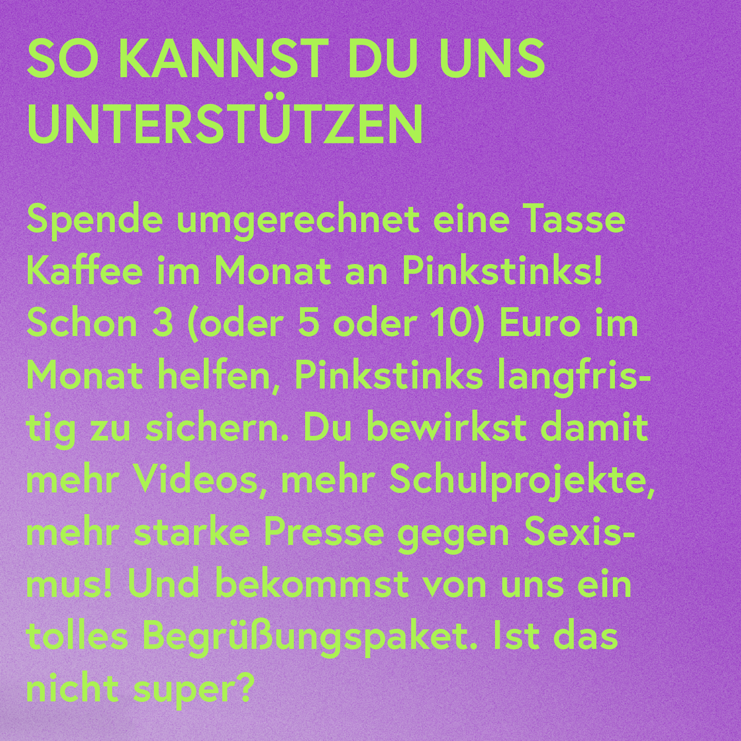 Damit wir 2022 wissen, wo wir stehen, nutzt bitte weiter die Werbemelder.in, wenn ihr sexistische Werbung seht! 2021 ist weniger Geld in Werbung geflossen: Ob das auch die sexistische Werbung betraf und Grund für weniger Meldungen ist, müssen wir gemeinsam herausfinden.