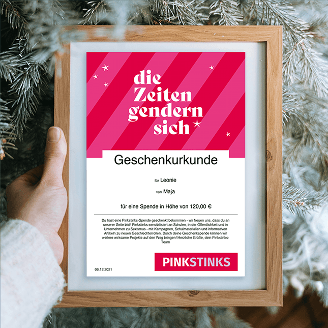 PS: Weil wir gerade einen Regierungswechsel hatten, endet unsere Förderung vom Bundesfamilienministerium am 31.12.2021. Wir hoffen auf Weiterförderung durch Anne Spiegel, aber noch steht das in den Sternen. Wenn du uns jetzt unterstützt, kommen wir dem Ziel näher, von diesen Zitterpartien nicht mehr abhängig zu sein. Danke! |